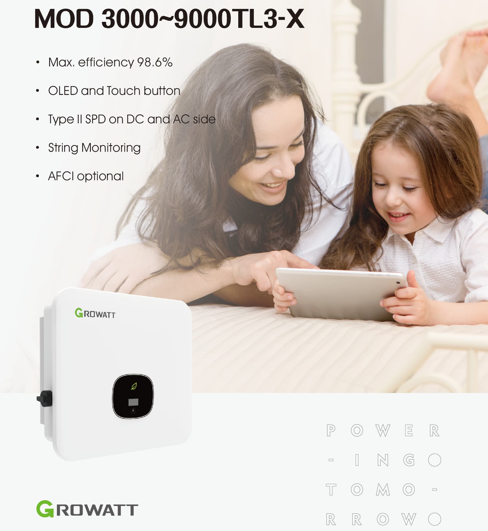 MOD 3-9KTL3-XWith years of experience in R&D, Growatt adapt to market trends and empower energy users with tailored products and solutions.
