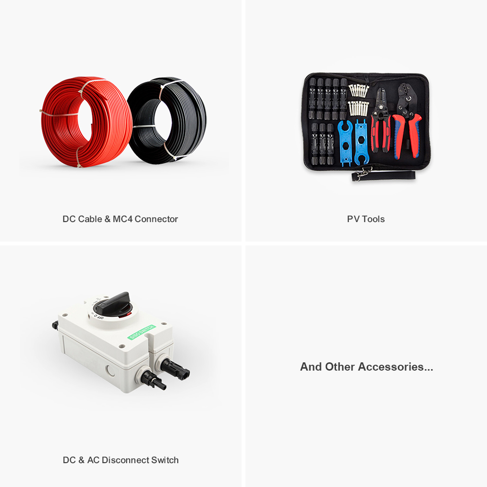 Accessories such as DC cable acritical parts of a solar energy system, connecting and supporting solar panels, inverters, and other equipment to ensure the system operates safely and efficiently for high-performance electricity generation.